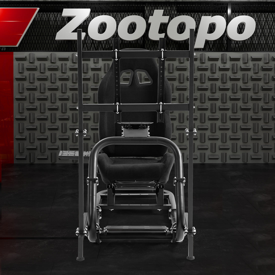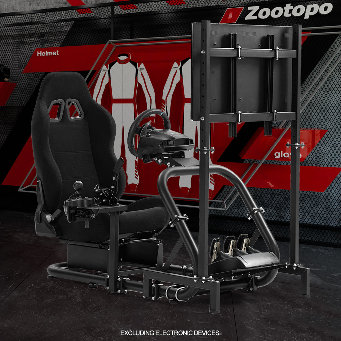 Zootopo Professional Racing Simulator Cockpit with TV Stand&Seat, Fit for Logitech G920/Thrustmaster/Moza, Streamlined Dual-arm Design, No Wheel, Pedals, Handbrake, and Monitor